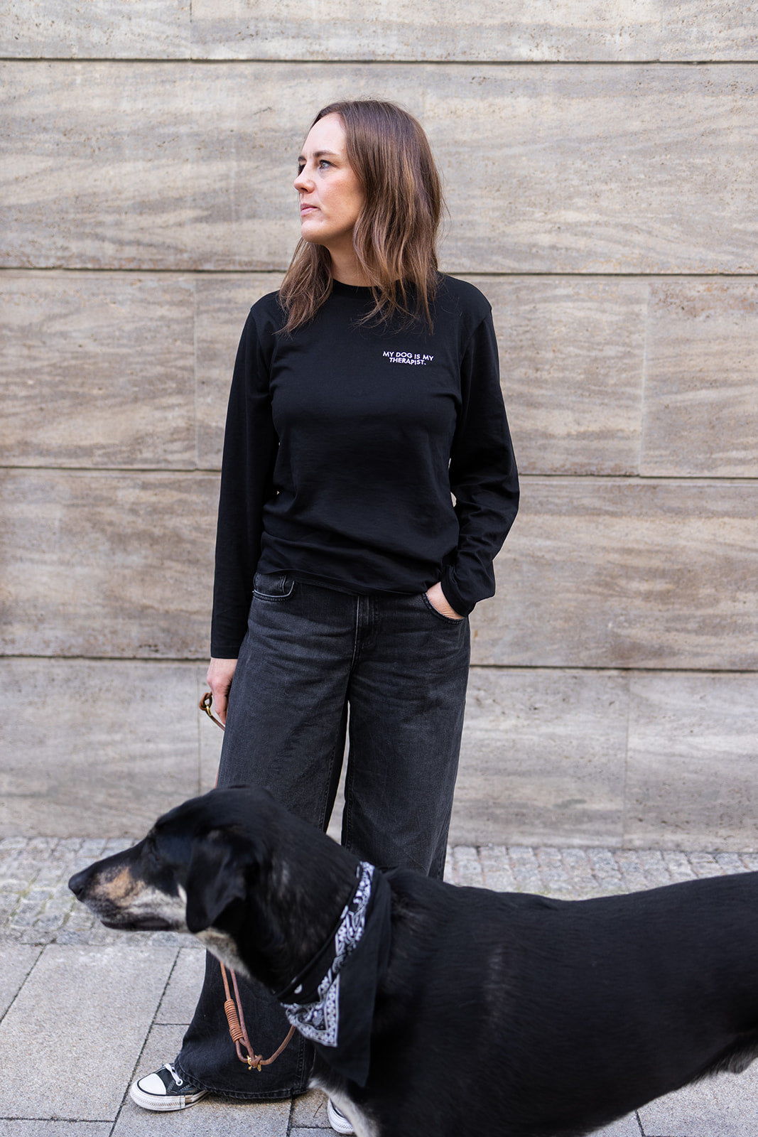 Longsleeve MY DOG IS MY THERAPIST Schwarz