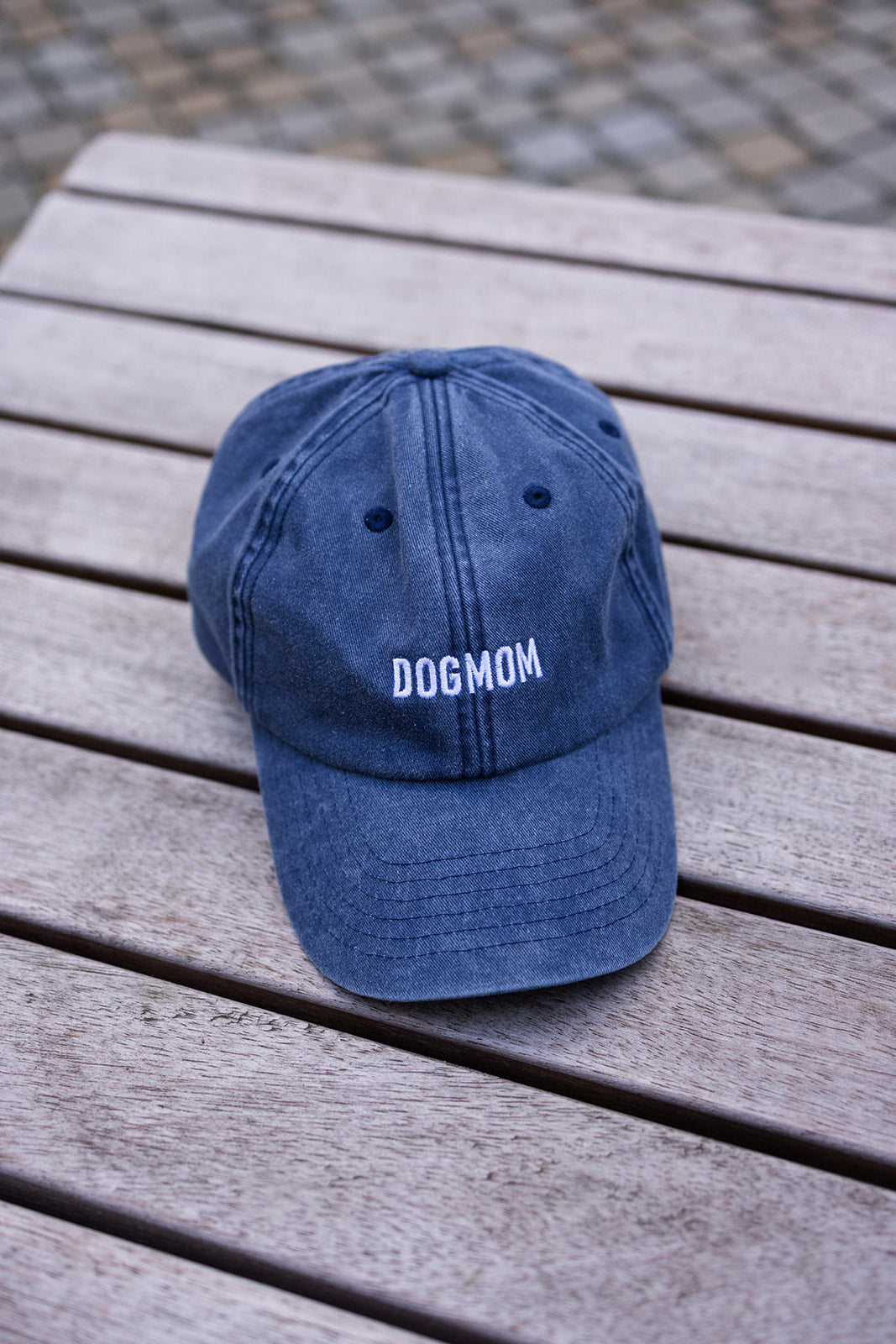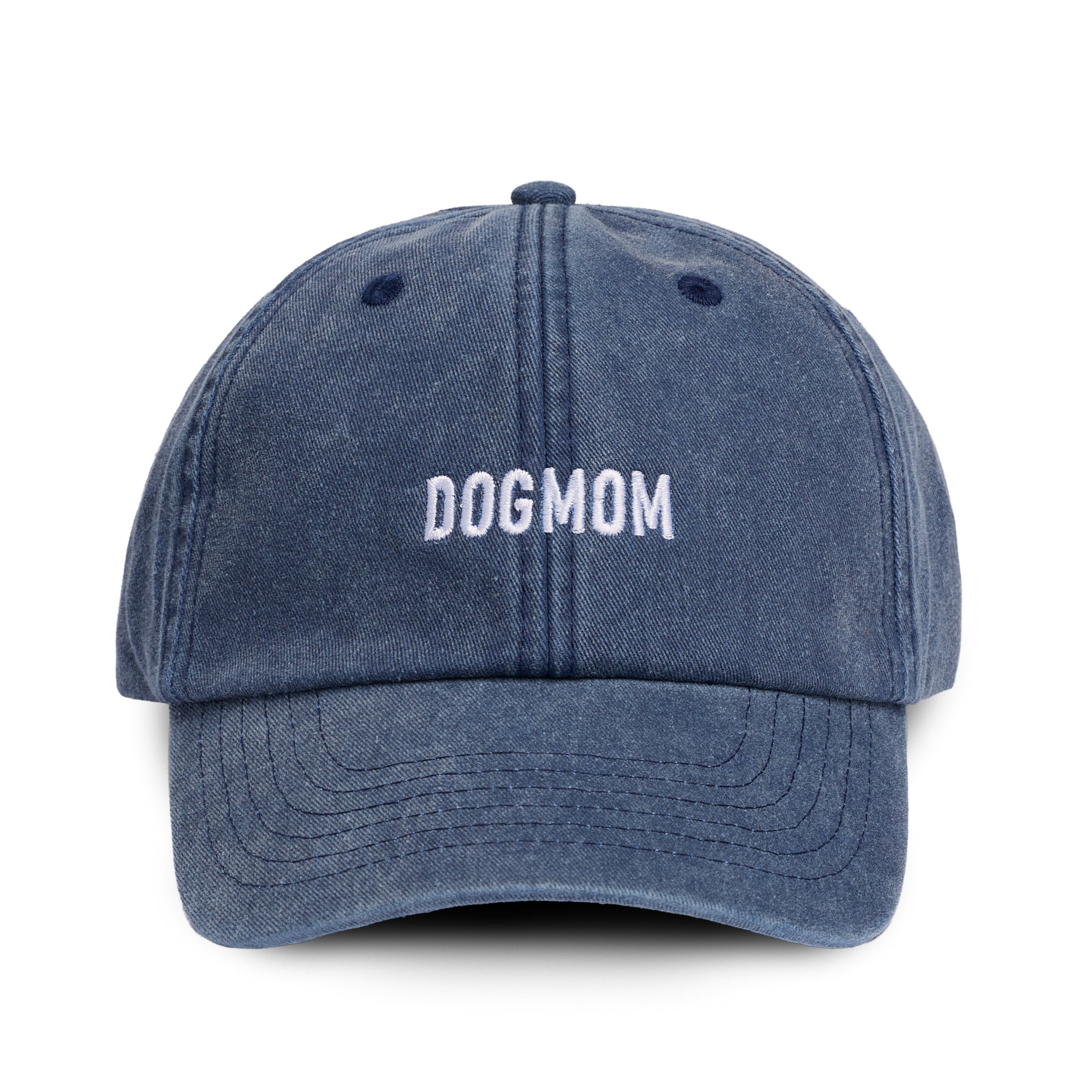 Cap aus 100% Baumwolle in Vintage Denim mit "DOGMOM" in weiß gestickt.