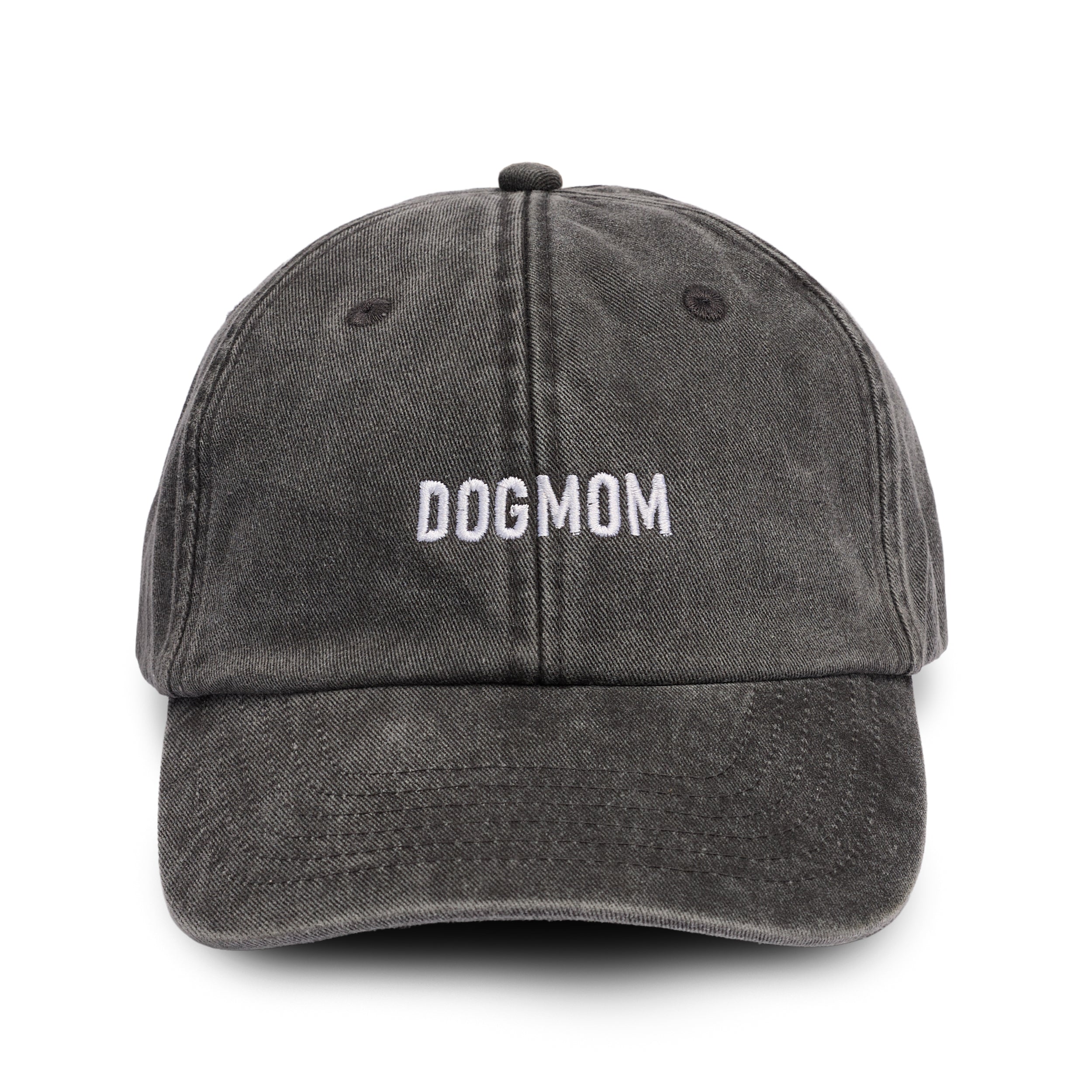 Cap aus 100% Baumwolle in Vintage Schwarz mit "DOGMOM" in weiß gestickt.