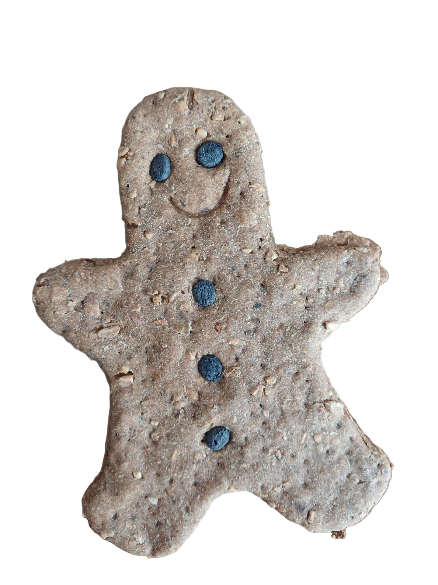 Feine Handarbeit mit Dinkelmehl, frischer Leber, Kürbiskern, Apfel und Beerendekor aus Heidelbeeren für die Augen.