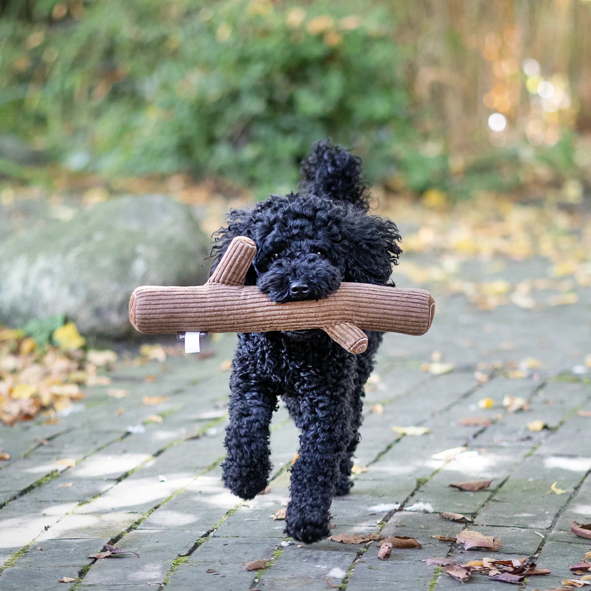 Apportierstöckchen aus Cord – weiches Spielzeug mit Knisterfolie