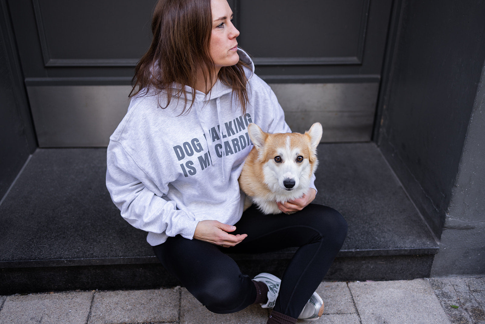 Oversize Hoodie "DOG WALKING IS MY CARDIO" Hellgrau unisex
