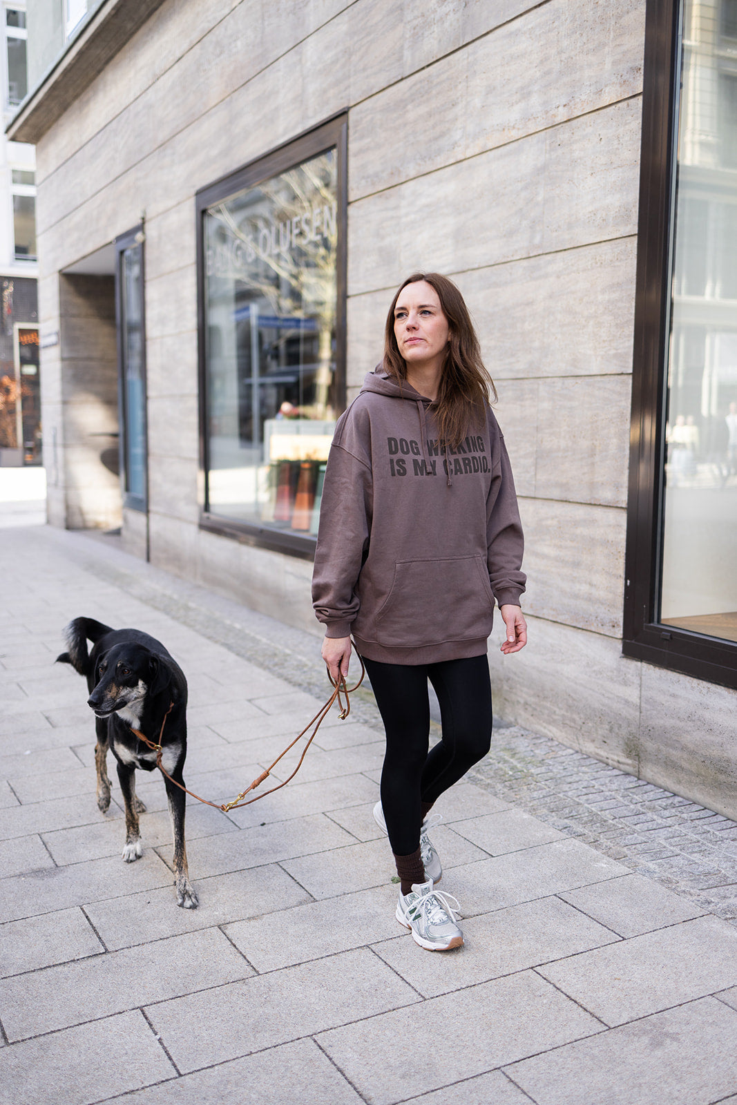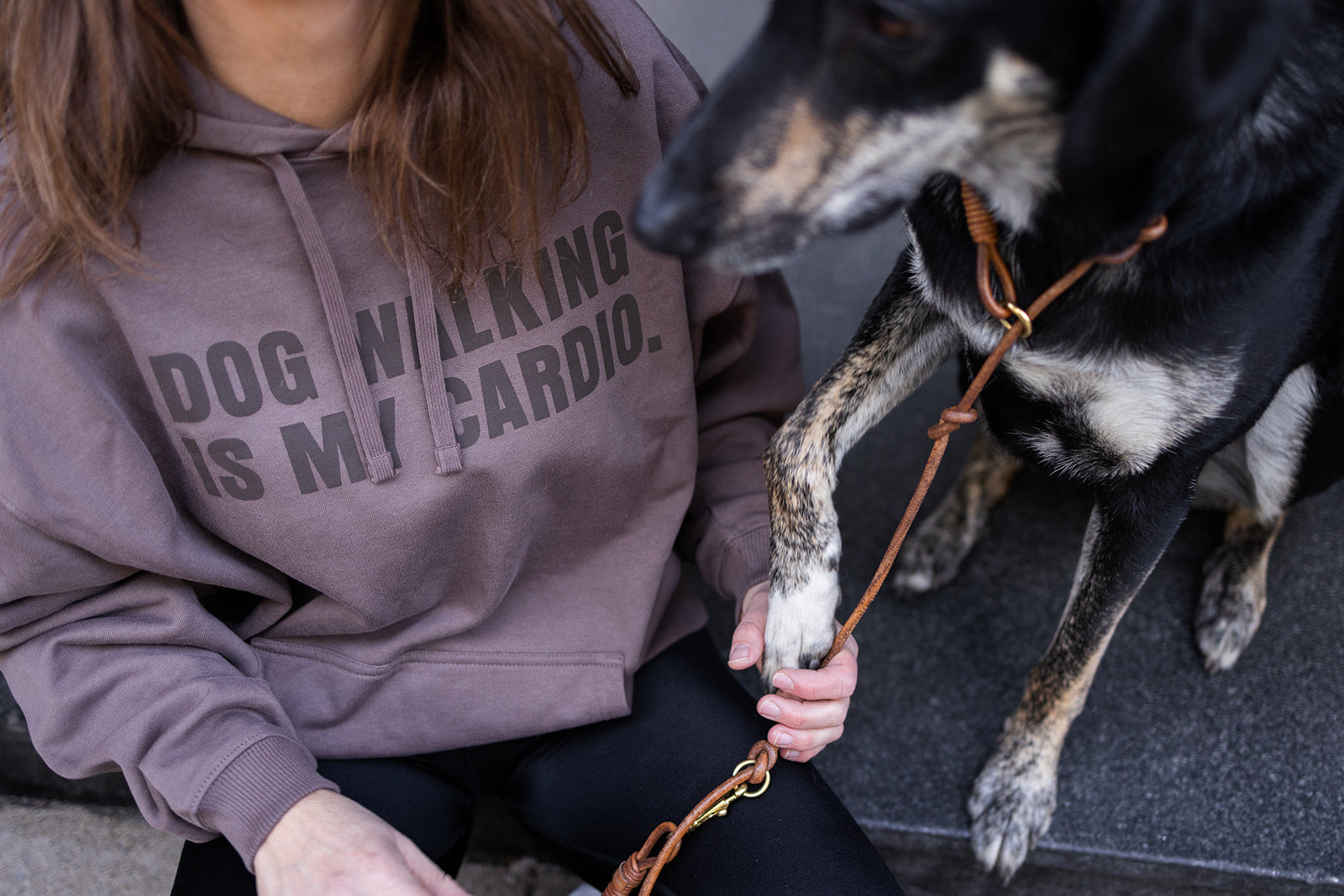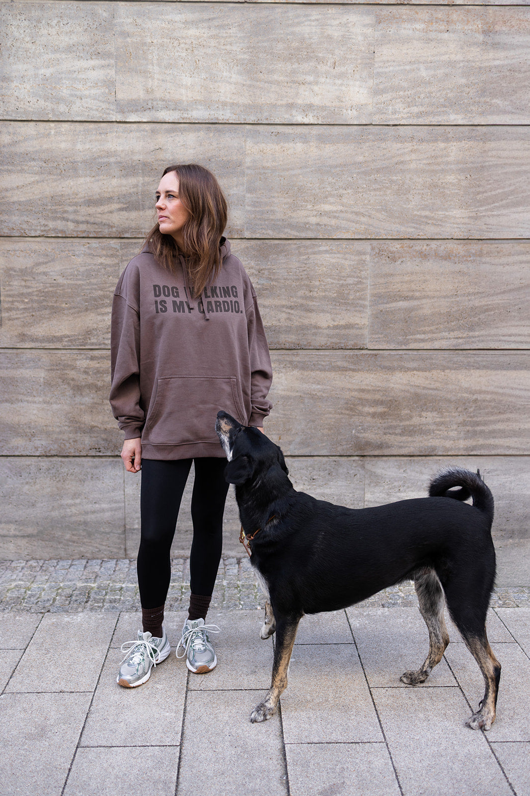 Oversize Hoodie "DOG WALKING IS MY CARDIO" Mocha unisex