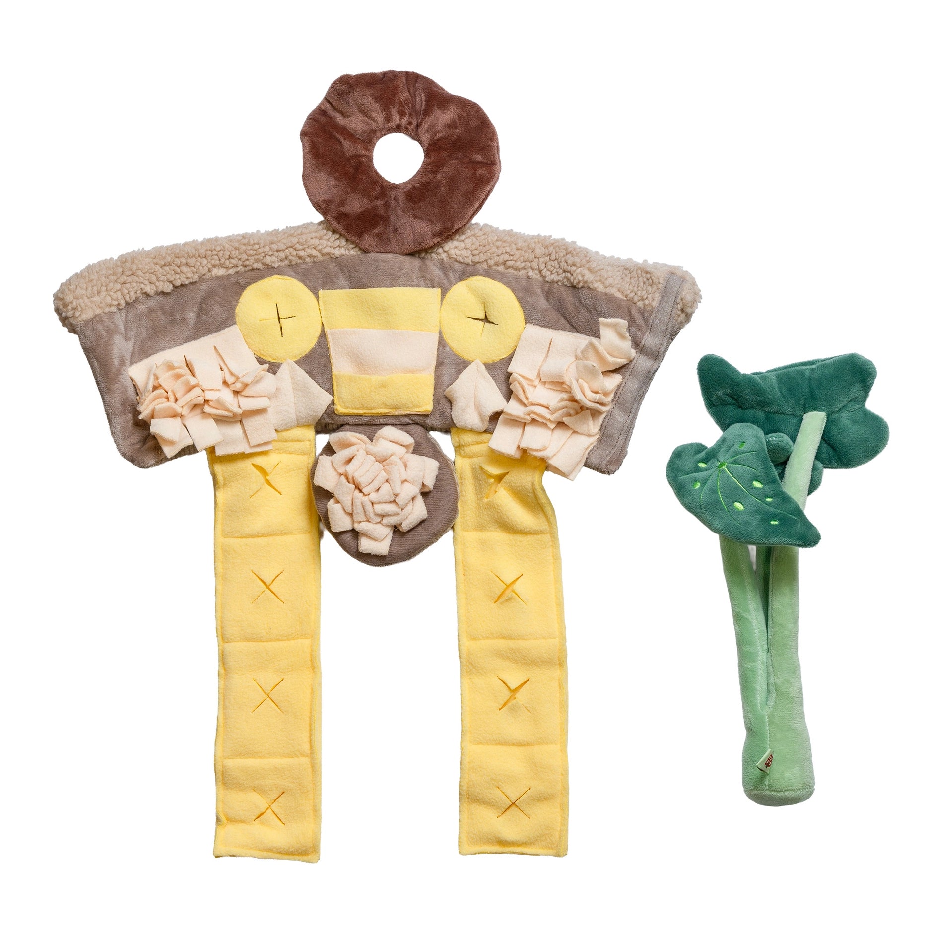 Verstecke die Leckerlis in den Taschen und Falten, falte die Pflanze wieder zusammen und lass deinen Hund selbst herausfinden, wie er sie entfaltet und die Belohnungen entdeckt.