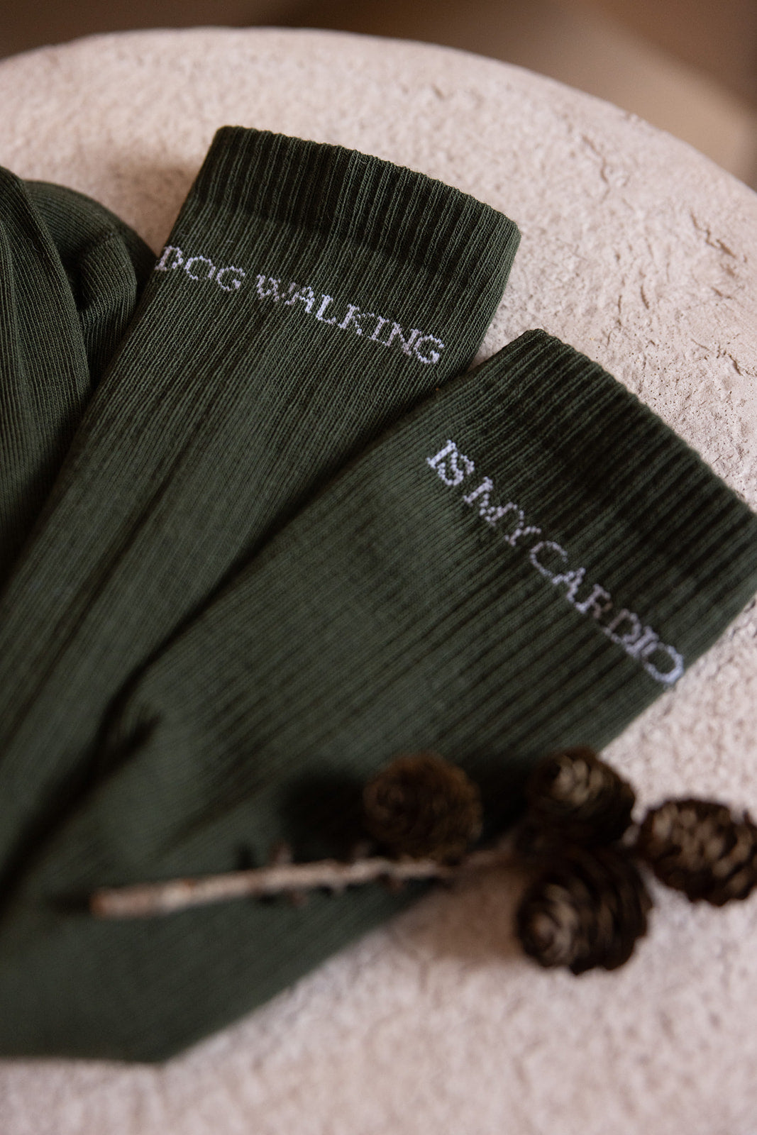 "DOG WALKING IS MY CARDIO" Socken Dunkelgrün